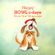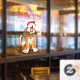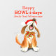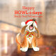 Cute singing dog howling a Christmas carol wearing a Christmas hat and elf style dog collar with stars and bells on a fun Christmas seasonal canine window cling. Ideal for dog businesses such as rescue centres and pet rescue centres, kennels, and dog boarding businesses. Personalize with your own business name and a message currently reads Happy HOWL-i-days. Other matching items are available. Cute dog art illustrated by hand in watercolor and designed by Sarah Trett for www.mylittleeden.com