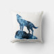 Howling Wolf blue sparkly smoke silhouette Throw Pillow