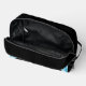 Howling Wolf Full moon blue black Custom Monogram Toiletry Bag. Cool fashion accessory - bags for him. Abstract geometric winter snowy blue and white smoke with black wolf silhouette. Personalize with your custom initial and name.