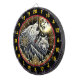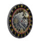 The wolf’s silhouette, bold and commanding, is surrounded by a starry night sky that adds depth and elegance to the design. Its circular shape and intricate details ensure this dartboard stands out as both a functional game accessory and a stunning piece of art.