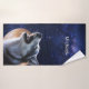 Salut le loup. Photo détaillée réaliste peinture IA, détail apparence douce fourrure. Avec une pleine lune et des étoiles dans l'arrière - plan. Customisez-le avec un nom.