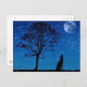 A drawing of a black wolf silhouette howling at the moon with a tree in the background.