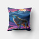 Howling Wolf Under Full Moon Over Mountains Throw Pillow