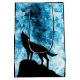 Abstract geometric winter snowy blue and white smoke with black wolf silhouette.