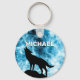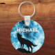Howling Wolf Winter snowy blue smoke Custom Name Keychain