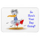 How's Your Day Going is the wording with a Funny Wacky Bird. Shows a confused Cartoon Seagull with wirey hair above his head, crossed eyes, a big yellow bill and wearing a scarf. He's holding a red fish, the catch of the day with small birds flying around. Did he have to fight for the fish or is he just having a bad morning? NOTE - This is on a WHITE background tho it lmay look a little like a light blue. Use customize and use the edit for your choice of background colours, or you may change the wording. Or buy as is.