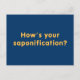 A fun design for people who make soap, these t-shirts and other items read "how's your saponification".