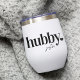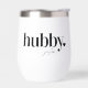 Celebrate the groom with this cute text-based honeymoon design featuring "hubby" in black lettering with a small heart illustration. Personalize with his name beneath in handwritten-style script. Matching "wifey" sold separately.