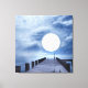 Huge Full Moon at End Of Ocean Pier Canvas Print