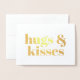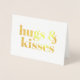 Hugs and kisses modern bold typography personalized elegant cute foil greeting cards.