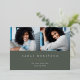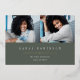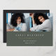 Le faire-part photo de graduation simple et moderne comporte deux photos alignées côte à côte, avec le nom du diplômé, l'école et l'année de classe en dessous en lettres blanches sur un arrière - plan vert sauge foncé. Le nom et l'école de votre diplômé apparaissent en dessous, et un accent doré chic complète le design. Ajoutez un message personnel à l'arrière, ainsi qu'une photo supplémentaire.