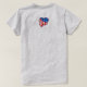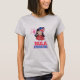 Our little hula girl is all dressed up in her patriotic hula garb ready to celebrate the Fourth of July and send her message of Aloha! This darling graphic adorns these ladies t-shirts on the front with a hibiscus flower companion print on the back.