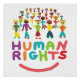 Human Rights design shows a variety of people celebrating humanity, friendship and equality, with a large "Human Rights" slogan below. A clear message of support for a fair world.