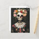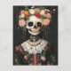A smiling human skeleton in a floral dress wearing a floral boho crown AI generated art by Angelandspot