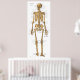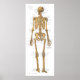 Human skeletal anatomical poster. Posterior view of the bones of the body with ligaments and tendon attachments of the joints. Bones and sutures of the skull. Bones and ligaments of the hand, foot, shoulder and pelvis.