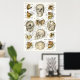 14 illustrations of the bones of the human skull. External and internal views. Sections showing details of the eye orbits, sinuses and facial bones. Colour coded anatomical poster for easy identification of the bones.