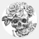 Human skull and roses black ink drawing classic round sticker