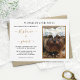 My humans are getting married! Let the "pet of honor" announce your wedding with this cute and fun black, gold and white pet photo wedding design featuring modern script typography and walking paw prints at the bottom of your photo framed in gold. Add your own special touch with your names (in gold), wedding date, location and favorite photo of you and your best pet(s). Perfect for a wedding involving your pet or pets as they will also walk down the aisle!