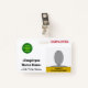 This humble and respectable staff member badge design features customizable information such as a portrait photo, a company/organization logo, an employee name, and a job name. A badge like this could perhaps be used to indicate that a person is a known and authorized employee at a business or workplace. [~Z0000450]