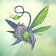 Vector cartoon illustration of a flying robot drone with green eyes and wings. Sadly, he was designed to take the place of hummingbirds, bees and other pollinating insects when they all became extinct. Tags: hummingbird, bird, bee, honeybee, drone, robot, droid, pollination, pollinate, machine, insect, green, grey, grey, bug, flower, bud, wasp, hornet