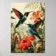 Poster Colibri et fleurs : Vintage