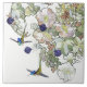 Gorgeous collage of Art Nouveau vintage botanical watercolor fine art of Hollyhock and Honeysuckle Flowers by Mucha, with beautiful blue flying Spatuletail Hummingbird Birds, is on this Hummingbirds Floral Tile. Image is public domain due to expired copyright.