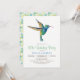 Hummingbird birthday party invitation. Invite features green and blue Hummingbird and floral pattern.