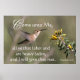 A Hummingbird coming to a flower on this Come Unto Jesus Christian Poster/Print.