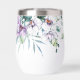 This elegant thermal wine tumbler features a stunning depiction of a hummingbird in mid-flight, its wings showcasing a mesmerizing blend of emerald green and amethyst purple, capturing the bird’s graceful and swift movements. The vibrant hummingbird is surrounded by delicate botanicals, including orchids with soft purple and white petals and yellow centres. The lush green foliage, intricately detailed, enhances the floral elements, creating a beautiful and harmonious design.