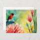 A vibrant watercolor painting captures the grace of a hummingbird in a garden, with vivid hues that bring the scene to life. From the delicate wings to the bright colours of the flowers. Perfect for nature lovers and bird watchers alike!