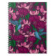 Vector seamless pattern with hand drawn fuchsia flowers and hummingbirds