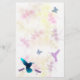 Delicate pastels form the background of this stationery, with Hummingbirds, Butterflies, and Dragonflies in the foreground. A brilliant blue Hummingbird in the lower left corner faces your signature.
