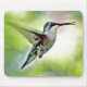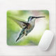 This mouse pad features a close up image of a hovering hummingbird with a soft colourful background.