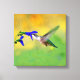 This wonderful print features a delicate hummingbird feeding at a bright blue flower. Hummingbirds are the only birds that can fly both forward and backwards as well as hover in mid-air, fly sideways and even upside-down.