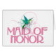 For the Maid of Honour in the Bridal / Wedding Party, elegant lettering in pink with a beautiful hummingbird and flourish.