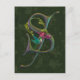 A beautiful hummingbird in iridescent blues and greens, drinking from an ornate deep pink flower hanging from a fancy metallic initial S, shimmering in rainbow colours.