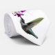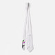 This necktie features the colourful image of a hummingbird feeding at a honeysuckle flower.
