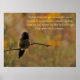 A photo in warm yellow and green tones of a female Anna's Hummingbird resting on a branch with inspirational saying that reads, "Sometimes we get caught up in trying to accomplish something big, that we fail to notice the little things that give life its magic." These hummingbirds are the most commonly seen in the Phoenix and Tucson, Arizona areas. At one time they were only temporary residents there in the winter, their permanent home being coastal Southern California. They not only love the carbohydrate sugars of flower nectar but also eat vast numbers of small flying insects. They are more vocal than other hummingbird species and are very territorial. This one's territory was an area with many Chuparosa Shrubs, which have tubular red flowers and were blooming in abundance (early February of 2019), and are a favourite food of hummers! Customize the text on this poster using Zazzle's many different font styles and colours or leave it blank if you prefer. Have fun making it your own! If you need any help, please don't hesitate to contact me, and I will be more than happy to assist you. You may contact me through my Wolf Moon Art and Design Facebook page. You can find the link on my about page in my store. Look at the bottom of the page where it says "connect with Wolf Moon Art and Design". Original photography copyright 2019 by Karen Coffelt.