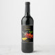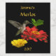 Easily personalize the text on this lovely floral red wine bottle label featuring a female ruby-throated hummingbird. The bird hovers in the air while drinking nectar from the golden centre of a bright red zinnia flower. A yellow zinnia blossom is nearby and a few green leaves complete the composition.