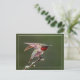 A male ruby throated hummingbird stretches as it sits on its perch.