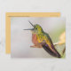 Postcard featuring a Buff-Tailed Coronet Hummingbird with its beak open. Photo taken in Ecuador.