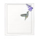 This pad features, in the upper right, an image of a hummingbird feeding at at beautiful purple flower.