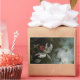 Two Hummingbirds Above a White Orchid (c. 1870s) by Martin Johnson Heade is a vintage fine art still life nature painting. Two birds sitting on a tree branch perched over a blooming white orchid flower in a tropical rainforest. A beautiful landscape with palm trees and mountains in the distance.