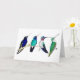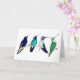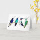 This pretty card for bird lovers is featuring several hand painted hummingbird species, for example a Broad-billed Hummingbird, a female Ruby-throated, a Starthroat, and a Coronet Hummingbird. All bird images are taken from watercolor illustrations by C. Dobbins.