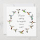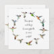 Note card for hummingbird lovers featuring a wreath of North American hummingbirds such as Anna's, Allen's, Ruby-throated, Costa's, Calliope, Rufous, Violet-crowned and Black-chinned hummingbirds and the quote "Time spent watching hummingbirds is never wasted." All bird images and quote by C. Dobbins.