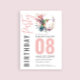 Invite your guests to your birthday party with this charming invitation featuring a beautiful hummingbird and floral wreath—custom text in pink and grey.