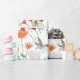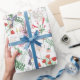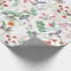Wrap your birthday party with this wrapping paper, which features watercolor hummingbirds and flowers in a seamless pattern on a white background.