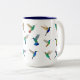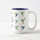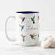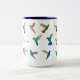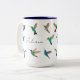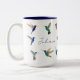 Cute mug for hummingbird lovers featuring several species of colourful hummingbirds, such as a Fiery-throated Hummingbirds, Golden-tailed Sapphire, Azure-crowned Hummingbird and Sapphire-bellied Hummingbirds, Broad-billed, Violetear, Coronet and Glittering Starfrontlet Hummingbirds. Images taken from original watercolor paintings by Christiane Dobbins.