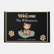 This fun Custom Welcome Doormat -- stars custom unique Happy Cat --and gently asks that your guests also wipe their "paws" before entering your lovely home. Warm and inviting -- for yourself or as a gift. Interesting calligraphy font -- easy to personalize. Any design questions, must send a chat or an email to charmdesignstudio@rcn.com and we'll be delighted to assist.