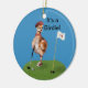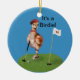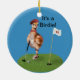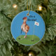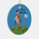 Humourous Bird Playing Golf, Customizable Text Ceramic Ornament